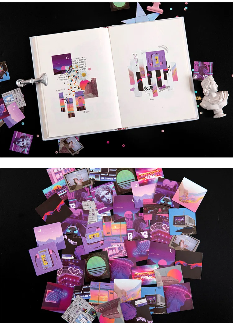 46 шт.кор. наклейки в стиле киберпанк, креативные канцелярские наклейки, декоративный дневник, фотоальбом сделай сам, ноутбук