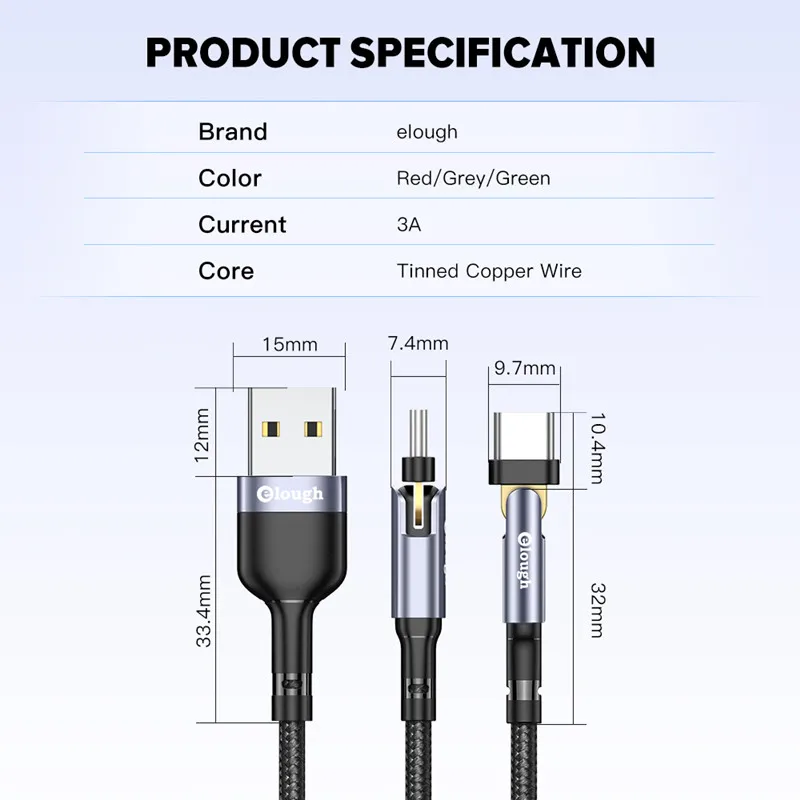 Feature 15Usb type-c cable / Cable usb c / Elough Type c