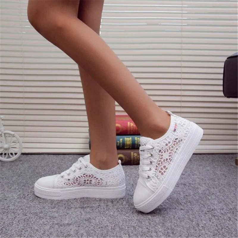 Женская обувь, Летняя Повседневная Белая обувь, кружевные парусинов...
