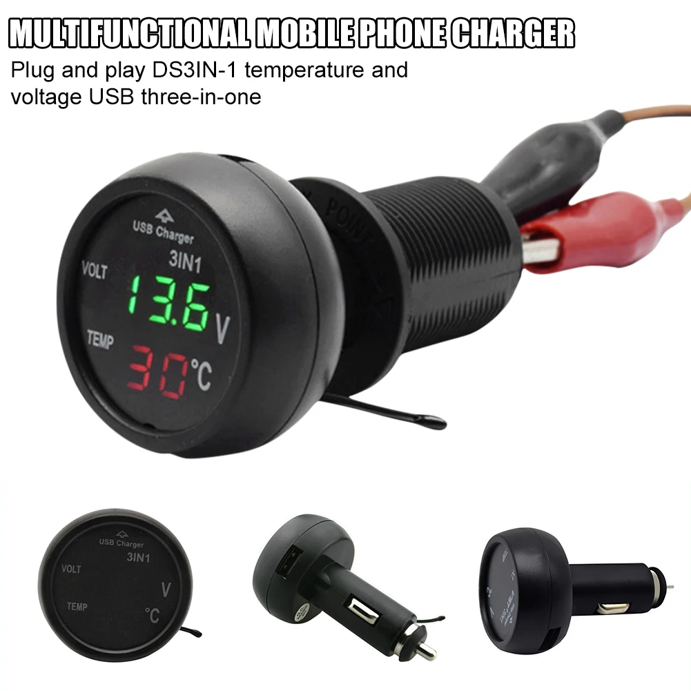 Универсальное миниатюрное автомобильное зарядное устройство для телефона 5 В2,1 а с одним USB 12 В24 В, адаптер зарядного устройства с вольтметром и термометром для iPhone, Xiaomi, Huawei