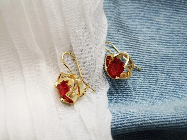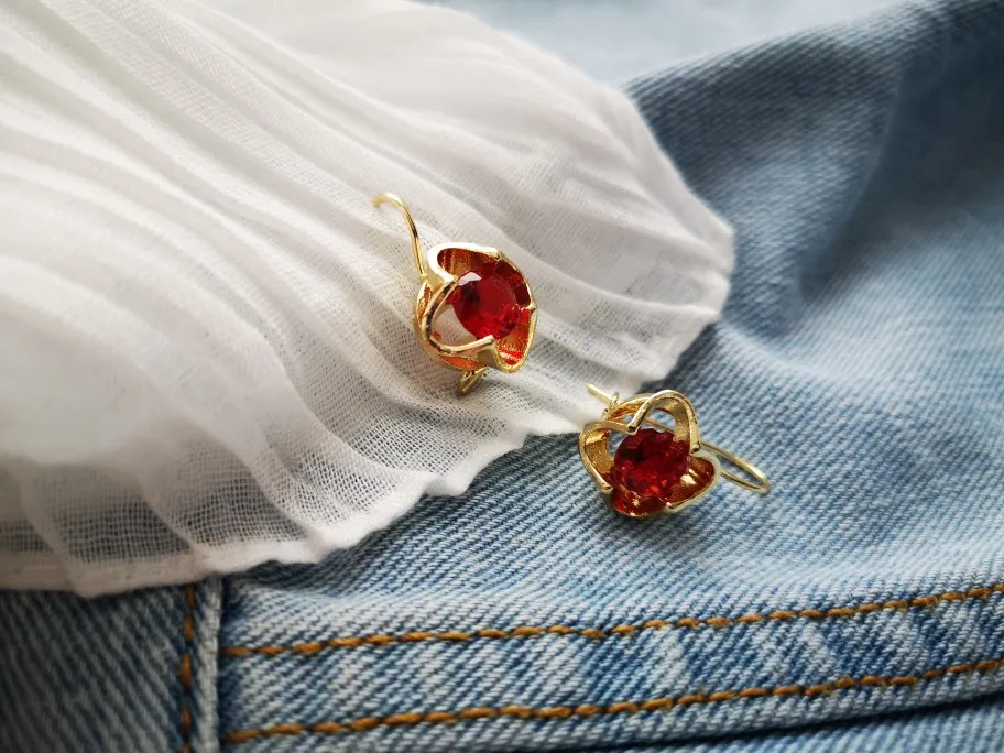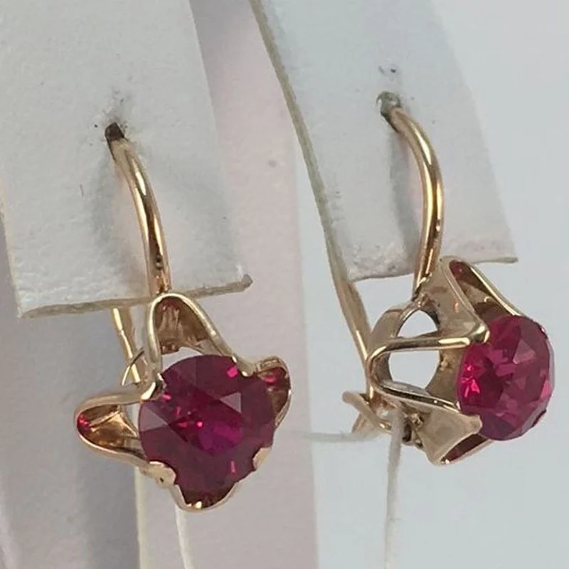 Винтажные серьги с камнем карминово-красного цвета. Похожи на серьги с рубином эпохи СССР. Вес одной серьги составляет 3 грамма. Застёжка французского типа. Металл - цинковый сплав. Камень - циркон. Доставка довольно быстрая - с момента отправки заняла всего 9 дней. В целом, неплохие серьги :) Думаю, гораздо интереснее смотрелись бы с камнем жёлтого или белого цвета. Продавцу спасибо! :)