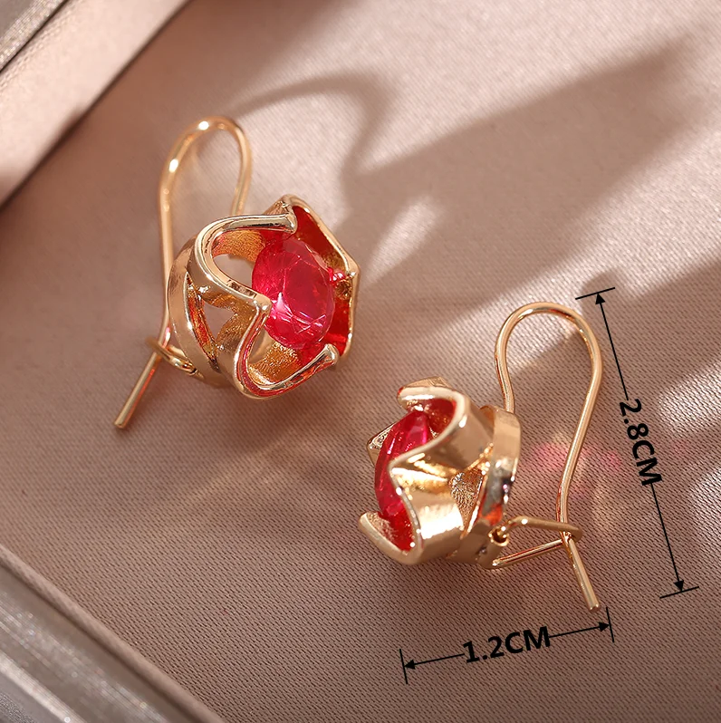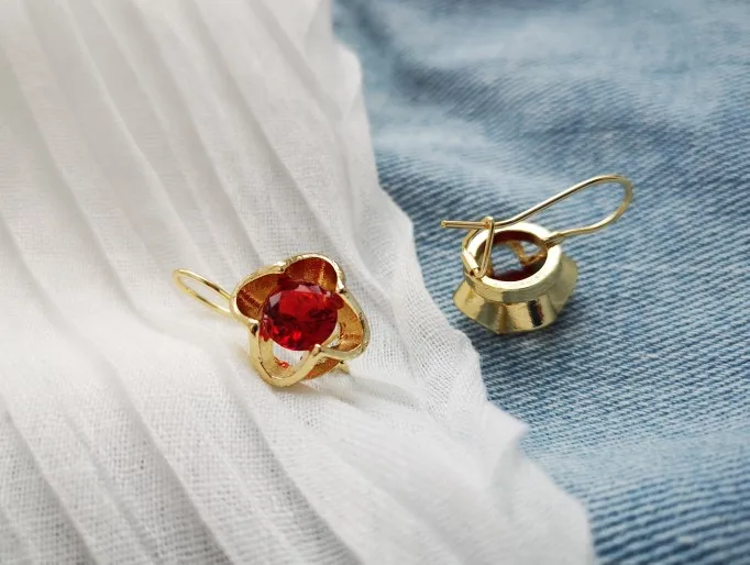 Винтажные серьги золотого цвета с красным кристаллом циркония для женщин, инкрустация фианитами, висячие серьги-подвески, женские свадебные украшения, подарки