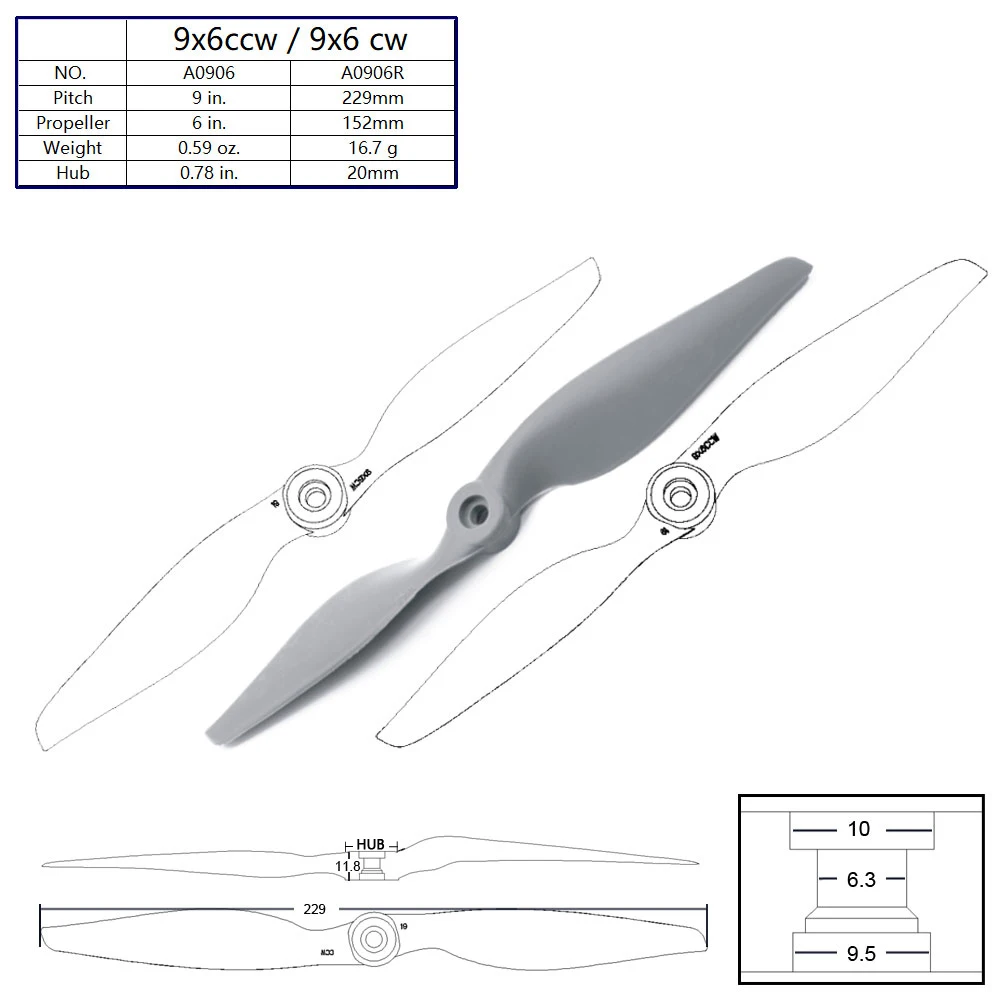 9-дюймовый 9x6 нейлоновый Стекловолоконный прямой привод CW CCW Пропеллер для электрического радиоуправляемого самолета квадрокоптера мультикоптера гоночного дрона
