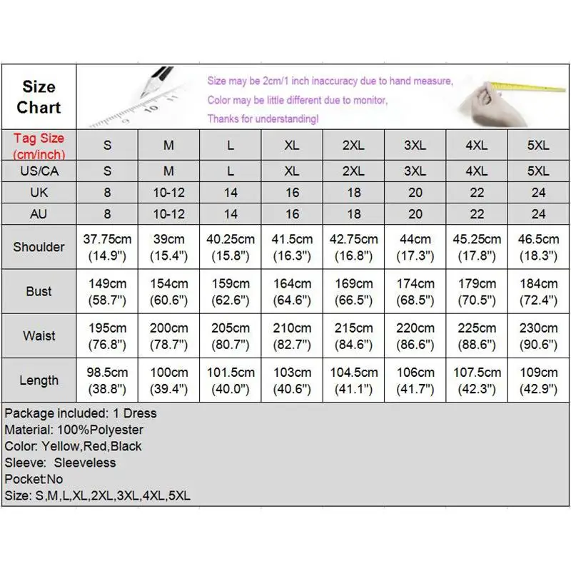 Посылка включает в себя: 1 платьеМатериал: 100% полиэстерЦвет: желтый, красный, черныйРукав: без рукавовКарман: нетРисунок: однотонныйДлина: до коленаОсобенности: трапециевидный, комбинированныйСтиль: Отдых, отдых, праздник, Европа, Повседневный, модныйСезон: весна, осеньПовод: вечерние, праздничные, уличные, дорожные, повседневные, семейные, вечерниеВнимание:1. Перед покупкой, пожалуйста, проверьте размеры в таблице размеров!2. Размер может быть неточным на 2 см/1 дюйм из-за ручного измерения, цвет может немного отличаться из-за монитора, спасибо за понимание!3. Предложение холодной воды ручная стирка. Это может помочь предметам сохранить свою форму.