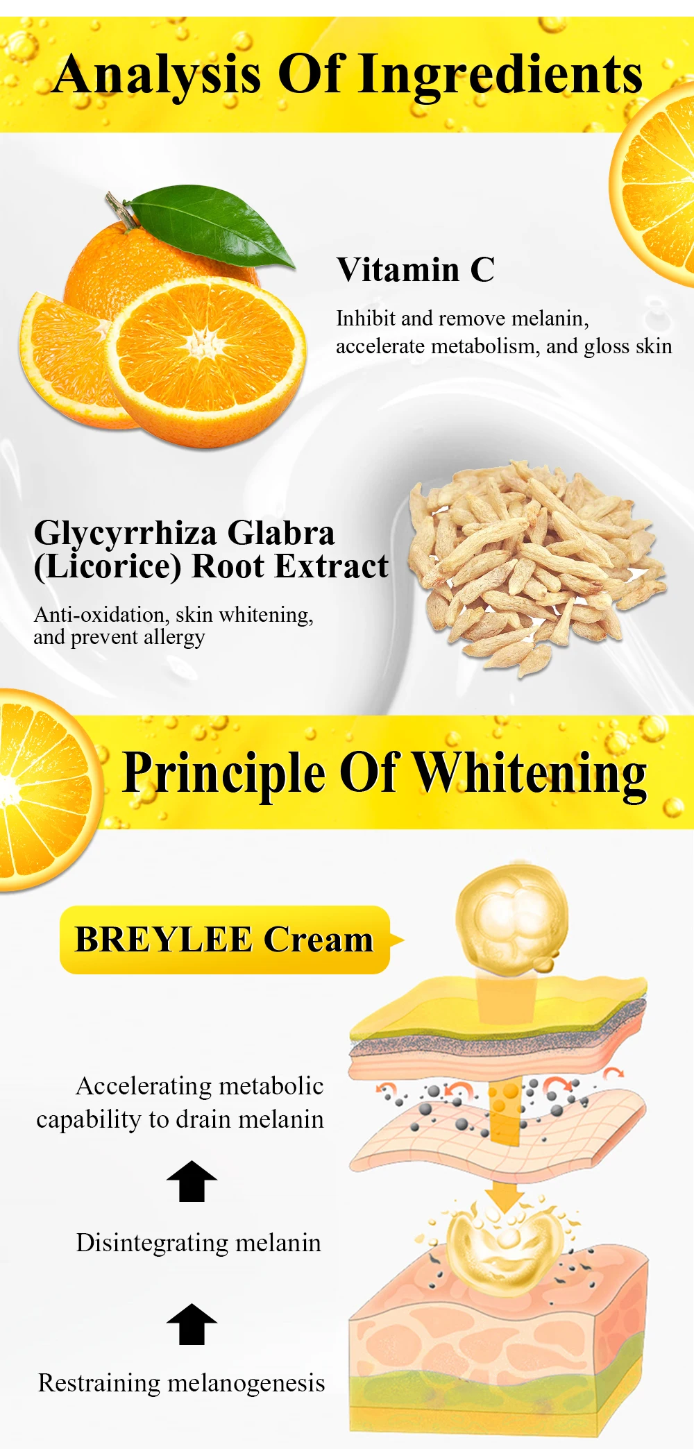 Отбеливающий крем для лица BREYLEE с витамином C, 20% VC, средство ...