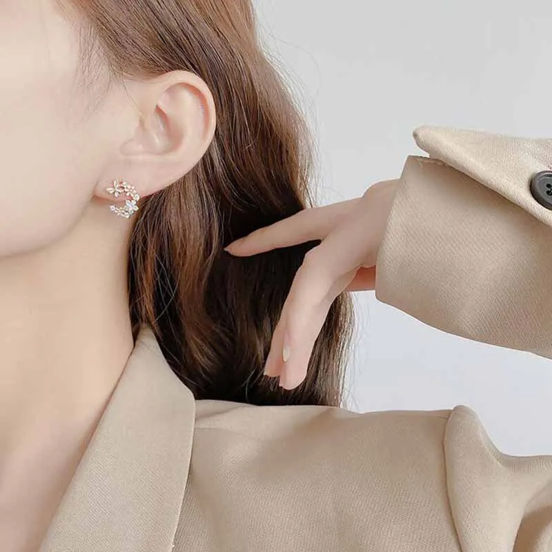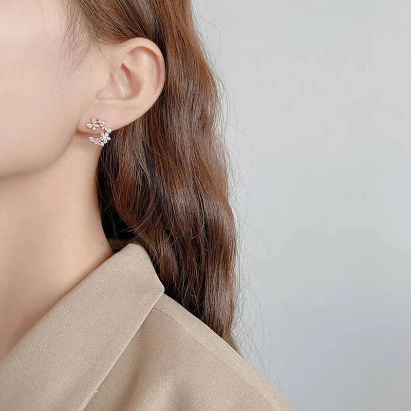 Серьги в Корейском стиле маленькие свежие и простые инкрустированны...