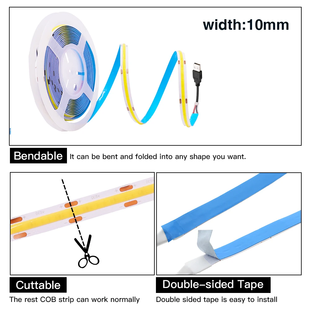 Светодиодная лента с монолитным блоком светодиодов 5 в постоянного тока, питание от USB, RA90, 320 светодиодов, линейная лента высокой плотности, гибкая лента с белымкраснымрозовымголубым цветом, лампа-брелок