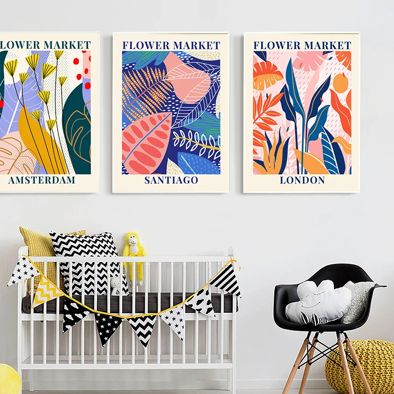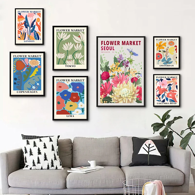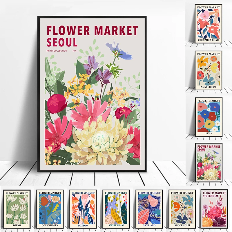 Постер с изображением цветочного рынка, винтажная Растительная живопись на холсте, абстрактное настенное искусство, Скандинавская картина для гостиной, домашний декор