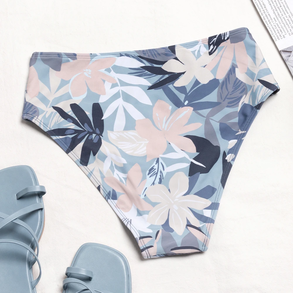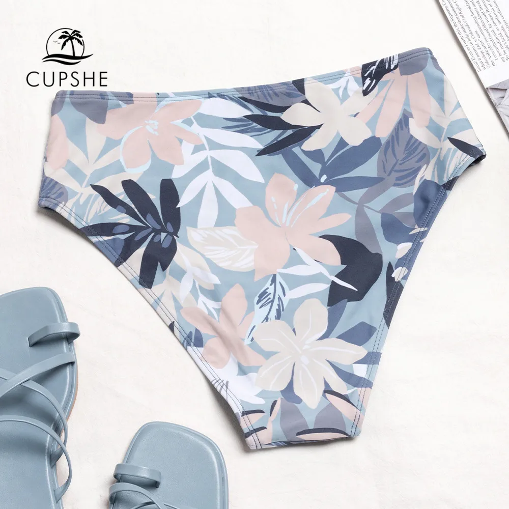 CUPSHE синий цветочный Высокая талия бикини Низ Купальник для женщин сексуальный Средний вырез Брюки Короткие 2022 раздельный Бразильский Купальник Низ