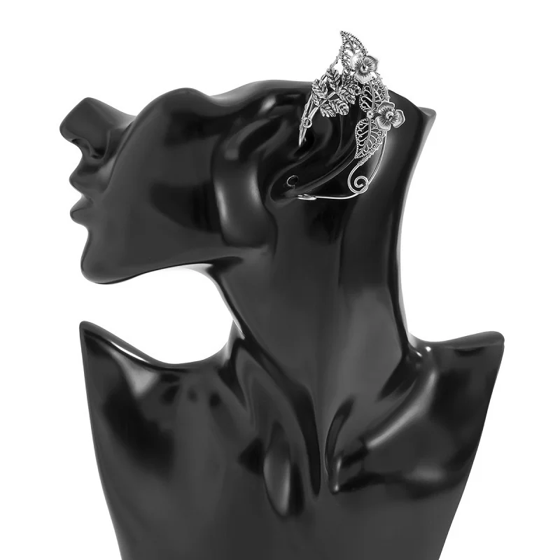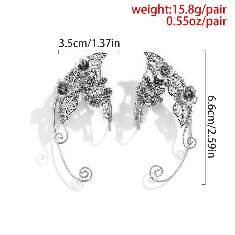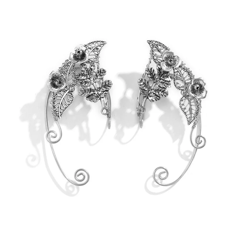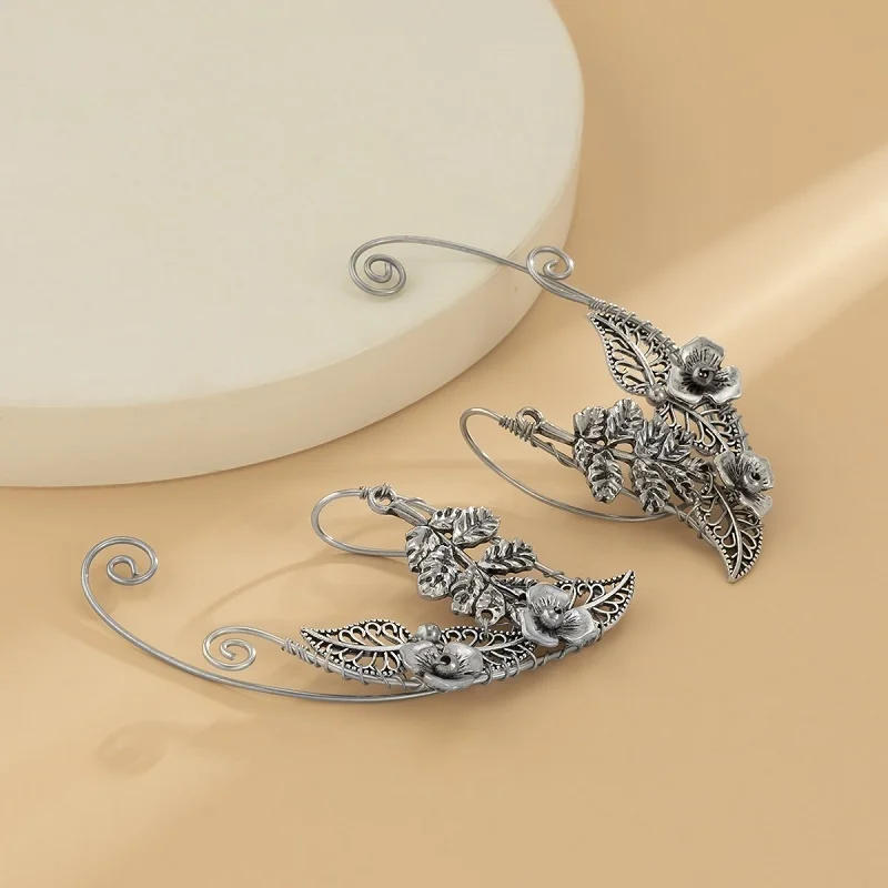 Винтажные женские серьги-клипсы с розой, цветком, эльфом, серьги, ювелирные изделия, серебряный цвет, полые металлические листья, без пирсинга
