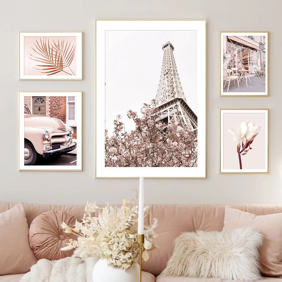 Настенная картина с изображением Парижской башни, цветущей вишни, Листьев, постеры и принты на холсте в скандинавском стиле, настенные картины для декора гостиной