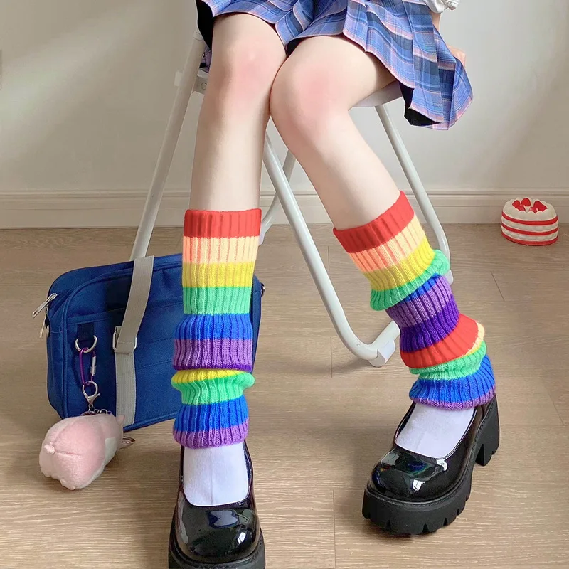 Новинка 2022, полосатые гетры, радужные вязаные длинные носки, женс...