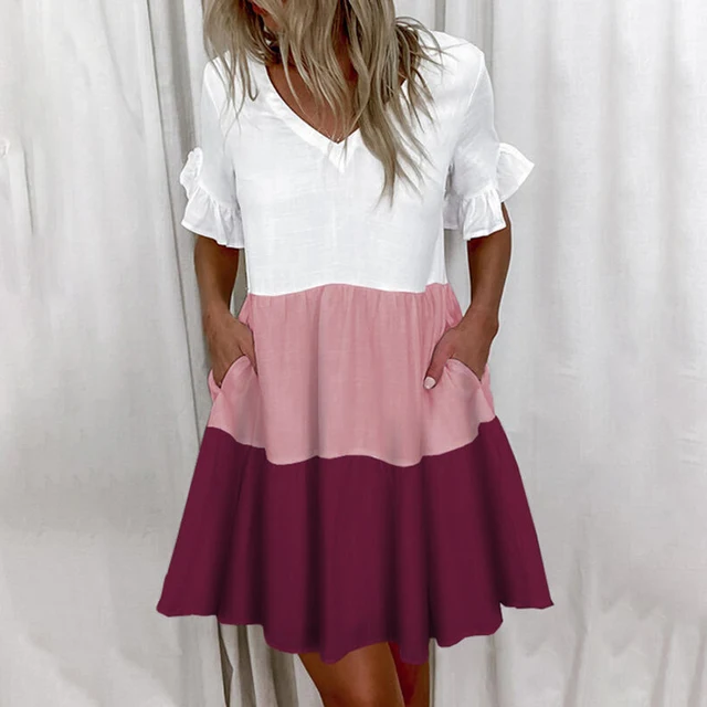 Женское мини-платье с оборками, летние модные элегантные лоскутные ...