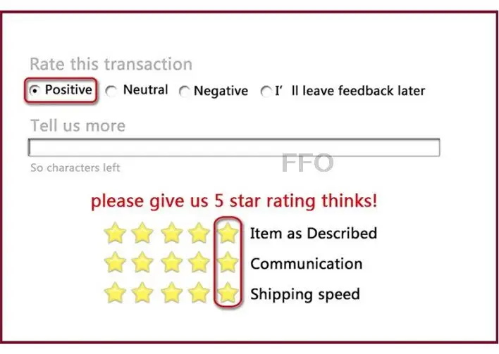 1. Если вам нравится наш продукт, не могли бы вы дать нам 5 звезд комментарий и поделиться с вашим другом. Вы цените нашу способность стать отличной компанией.