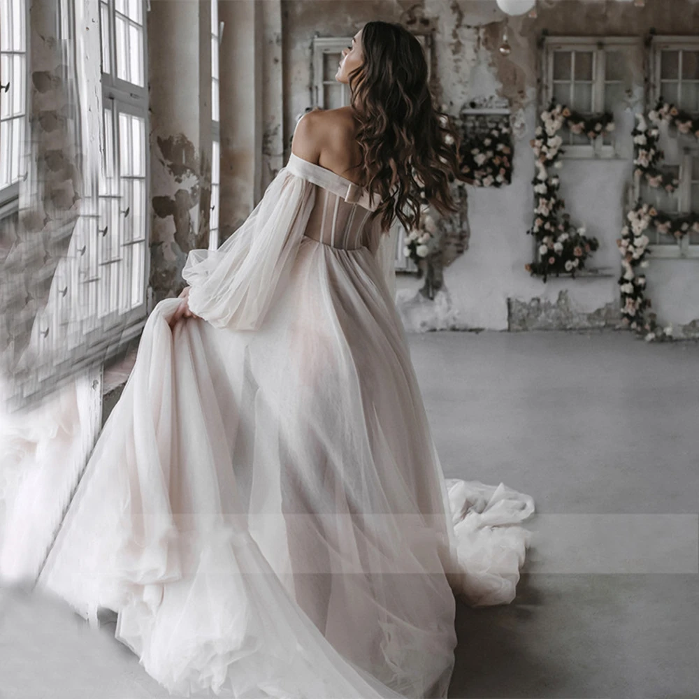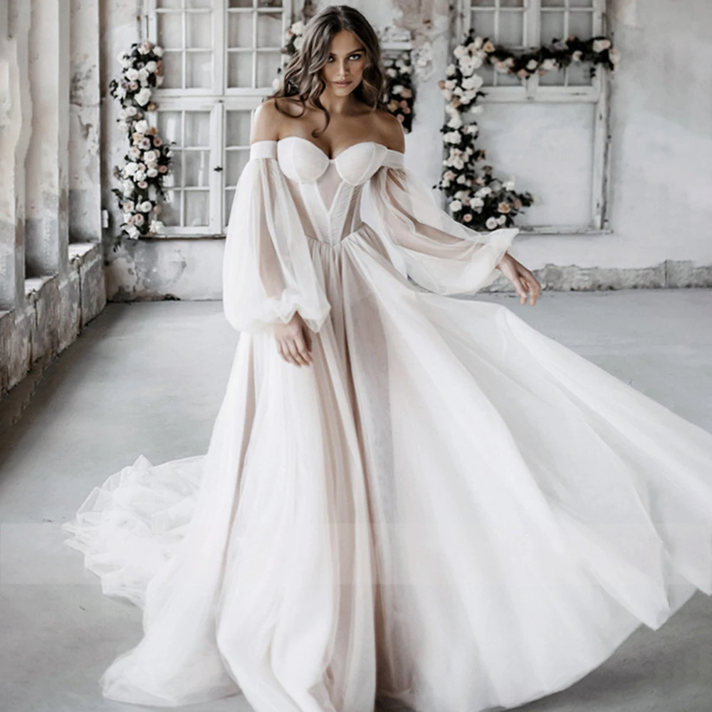 Женское богемное свадебное платье, ТРАПЕЦИЕВИДНОЕ платье принцессы с пышными рукавами и открытыми плечами, модель 2022 года