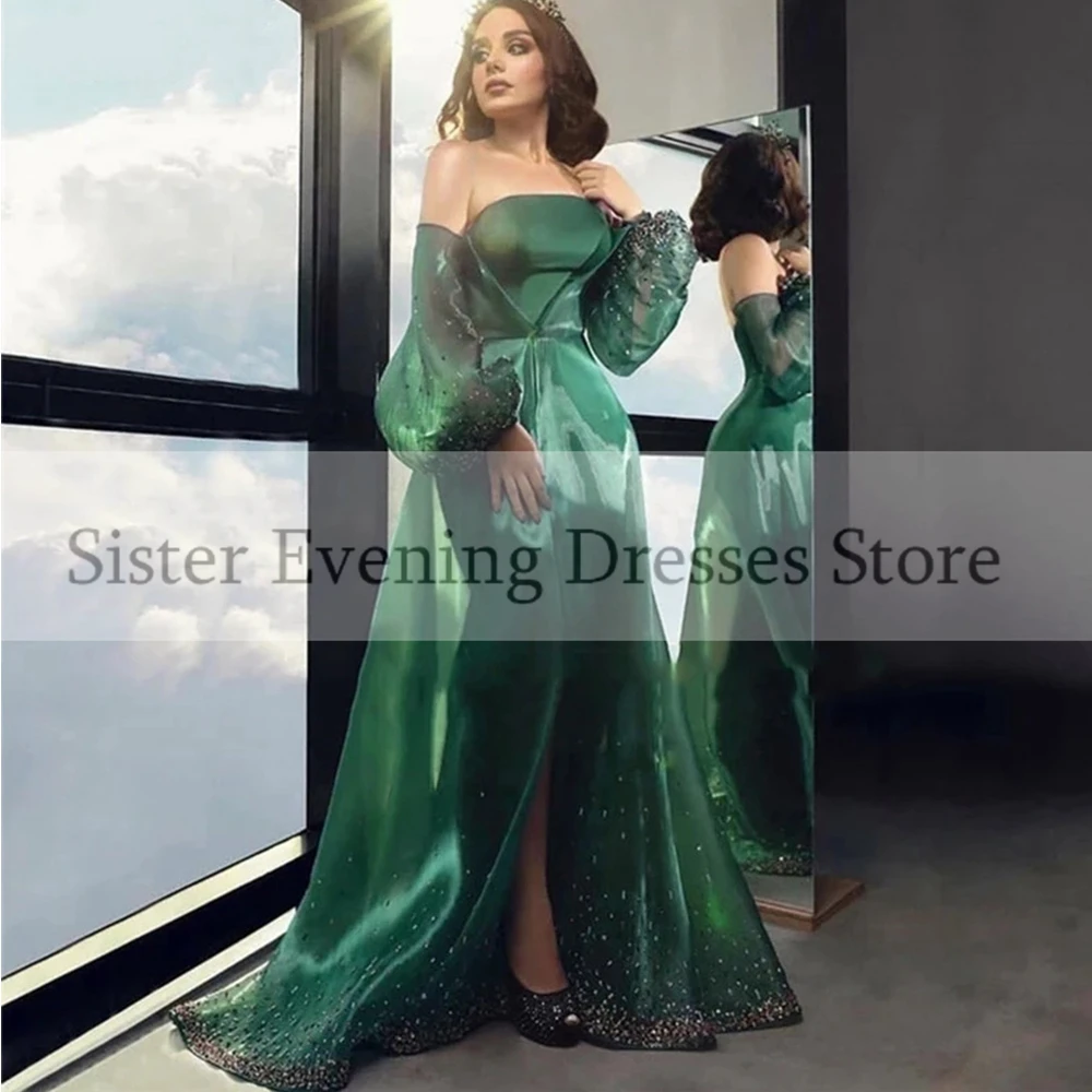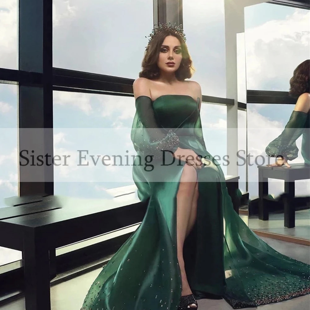 Изумрудно-зеленое вечернее платье Sister без бретелек с бусинами и длинными рукавами из органзы платье русалки для арабского выпускного вечера платье для девочки платья