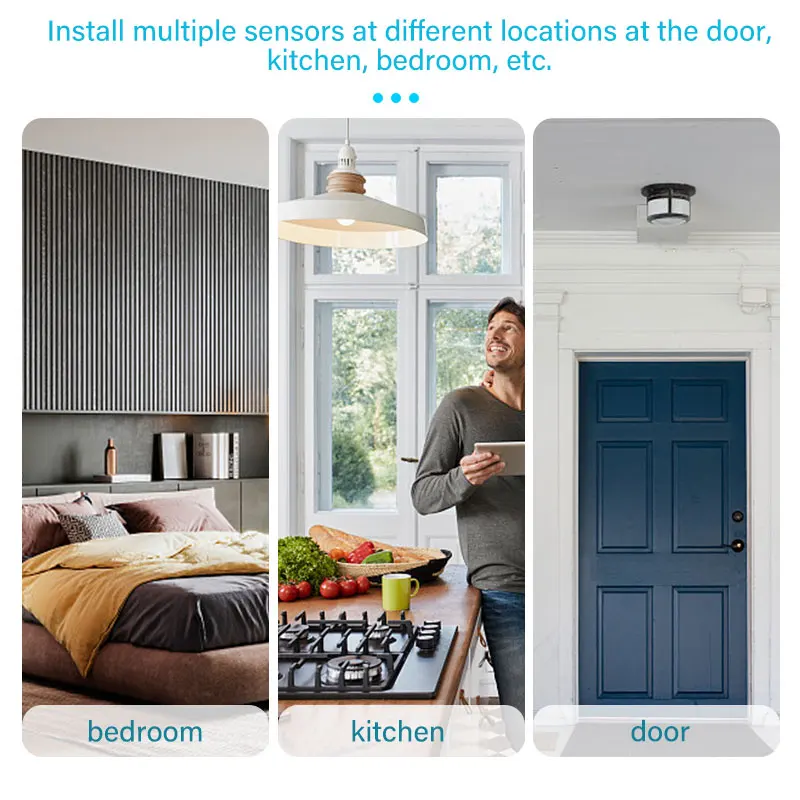 Супер большой угол обнаружения 150 ° может ощущать движение человеческого тела в пределах 7 метров и спокойно записывать каждый момент. Установите несколько датчиков в разных местах на двери, кухне, спальне и т. Д. Одновременно. Когда вы открываете дверь, светильник для гостиной автоматически включается; Когда вы выходите из кухни, кухонная розетка автоматически отключается; Когда вы просыпаетесь ночью, настольная лампа автоматически включится... Через связь с другими устройствами smart home, где бы вы ни находились, умная жизнь может следовать. Когда Устройство воспринимает движение человека в пределах диапазона обнаружения, оно будет передавать информацию в облако через шлюз, и вы можете получить сигнал тревоги в реальном времени нажимается в приложении. Где бы вы ни находились, и вы будете контролировать движение.