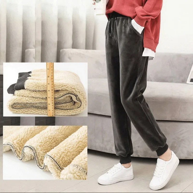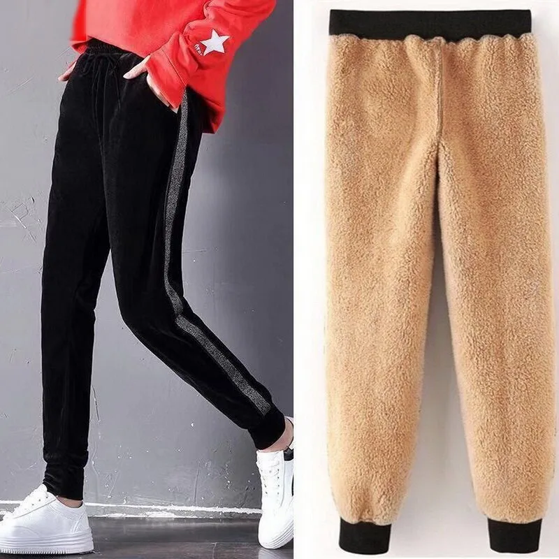 Женские спортивные штаны из меха ягненка, Зимние Женские однотонные...