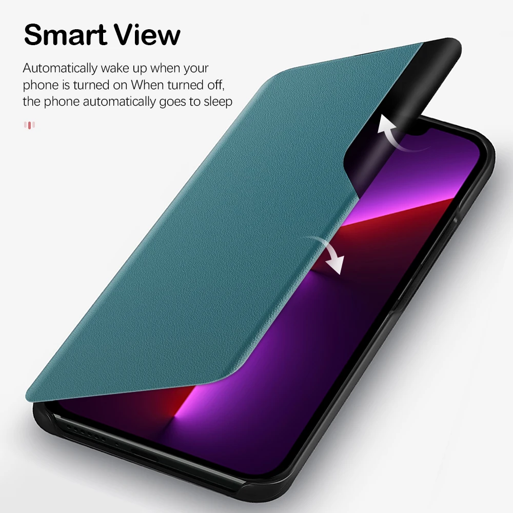 Model 3Smart Mirror View Flip Leather Phone Case For iPhone 13 12 11 8 7 6