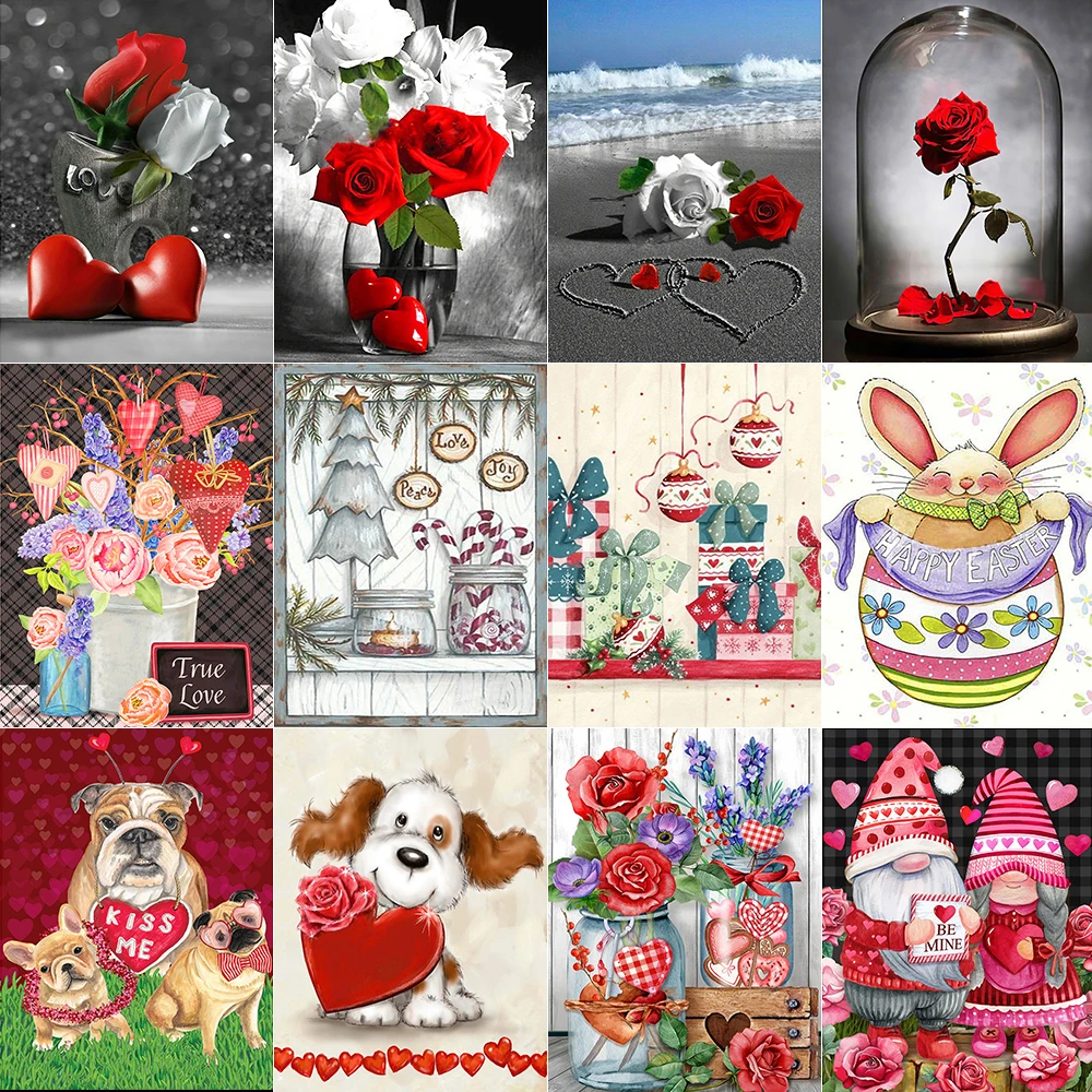 Алмазная 5D картина сделай сам, мозаика в стиле Пасхи, Дня Святого Валентина, розы, яйцо, кролик, полная круглая вышивка стразы, ручная работа, домашний декор