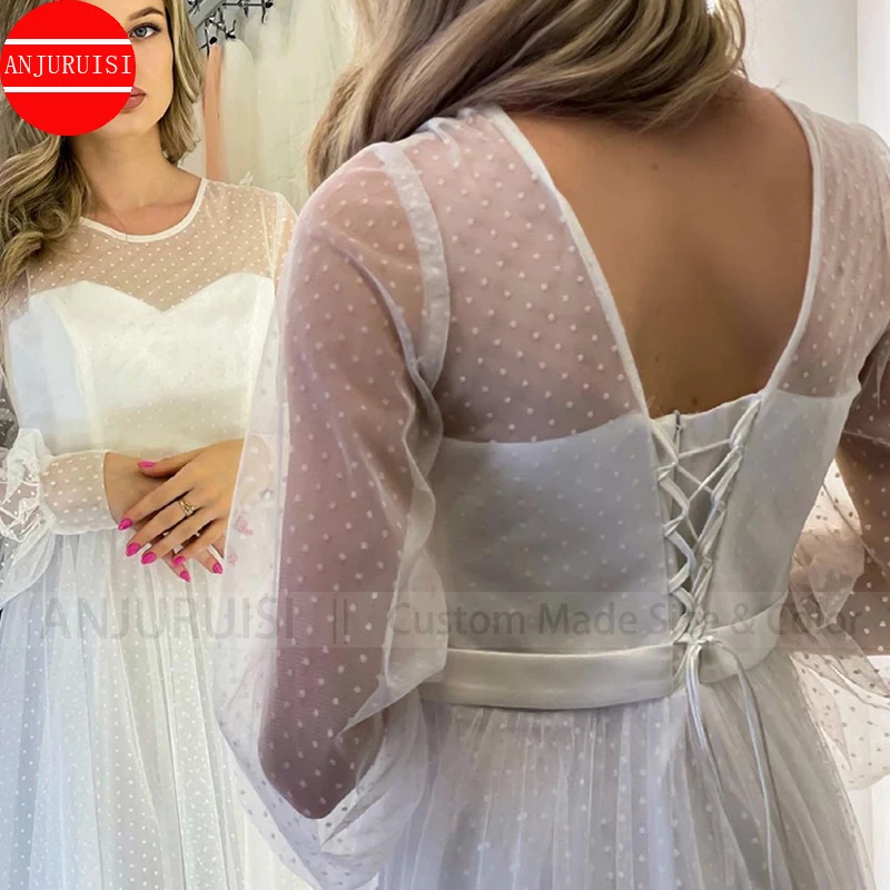 Свадебное платье невесты, с длинным рукавом, с кружевом на спине, 2021