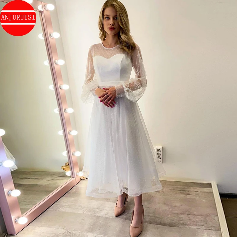 Женское свадебное платье, короткое платье с длинными рукавами-фонар...