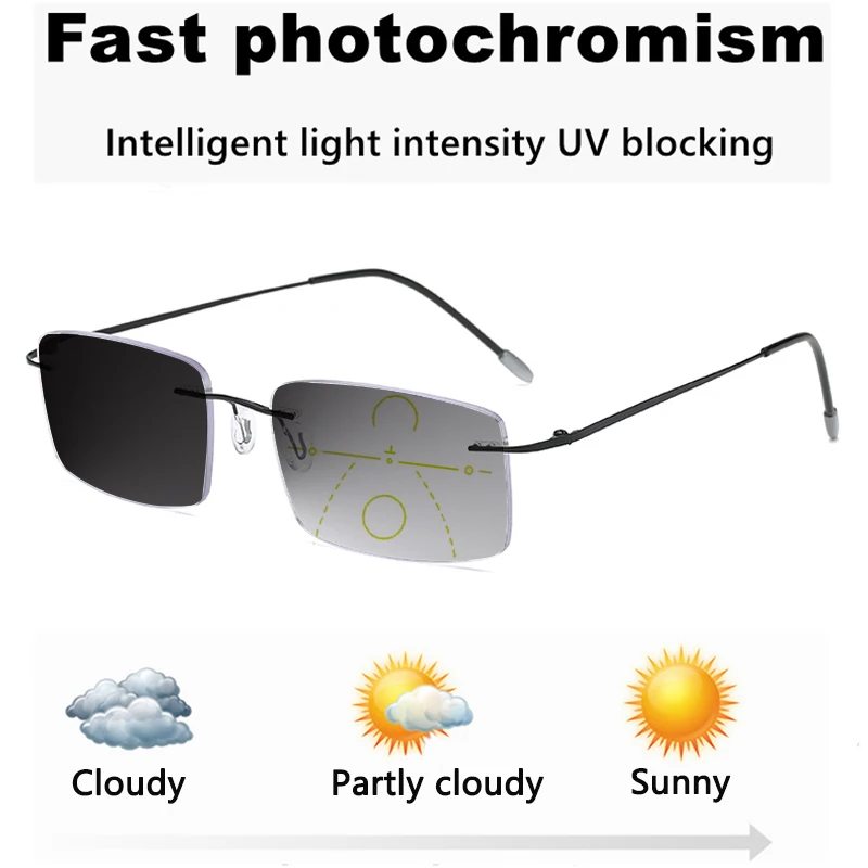 Спортивные фотохромные многофокальные безободковые очки для чтения для мужчин и женщин, прогрессивные ульсветильник кие пресбиопические очки с защитой от синего света