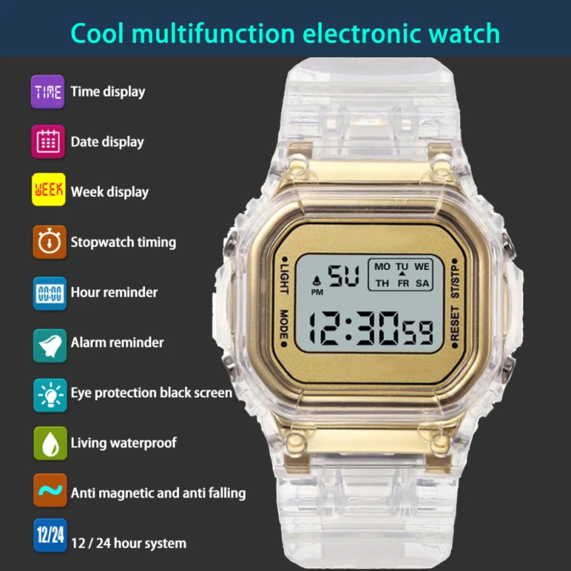 Светящиеся спортивные цифровые часы, маленькие квадратные прозрачные часы IPX67, женские и студенческие электронные часы, подарок, Прямая поставка