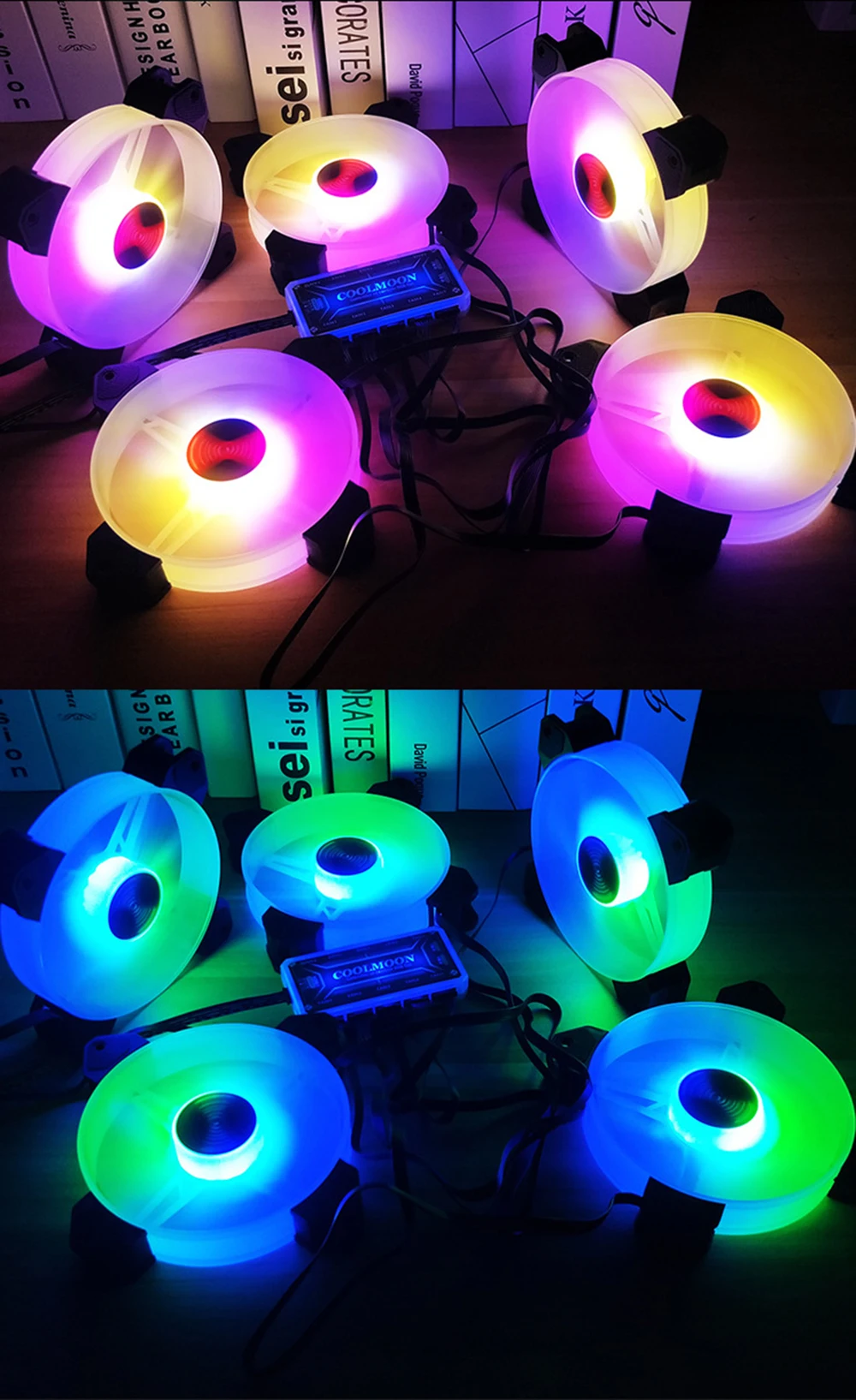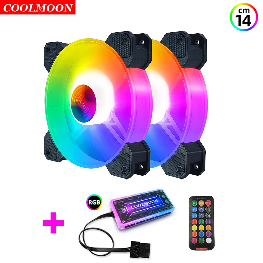Кулер Coolmoon для охлаждения шасси, 140 мм, RGB, 6 контактов