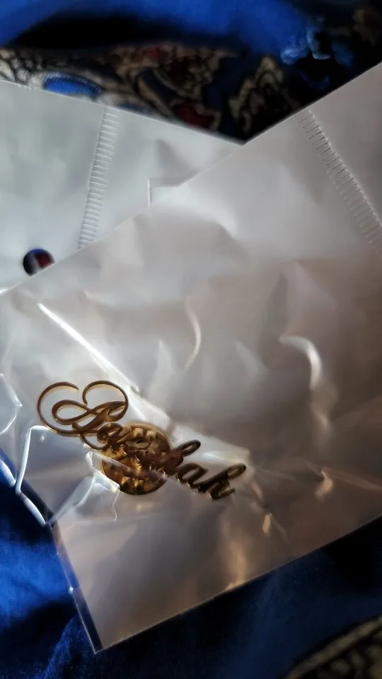 Качество отличное. Сообщение от продавца идёт на месте и она будет отправлена в доставляются довольно быстро. Только у меня проблема заключается в том, что штифт, который был для того, чтобы удержать ткань была помещена на изнаночная сторона, так что в тех случаях, когда я ношу его слова на самом деле задом наперед.