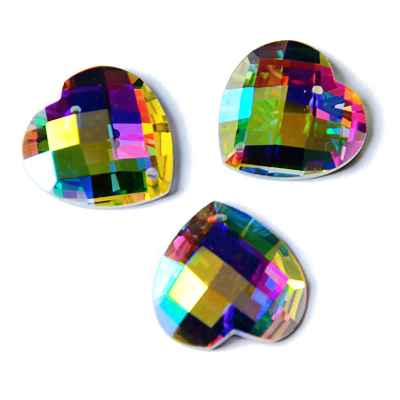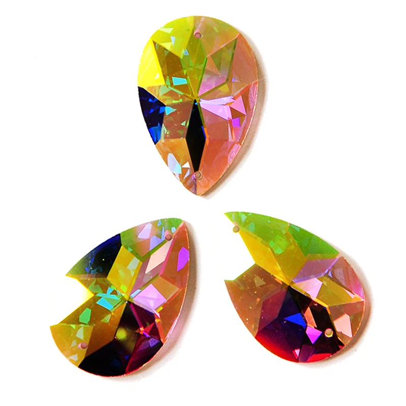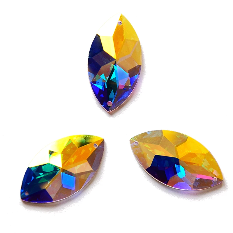 Большой Кристалл AB 2 отверстия Пришивные зеркальные стразы с плоск...