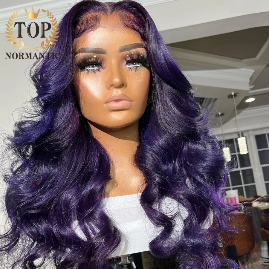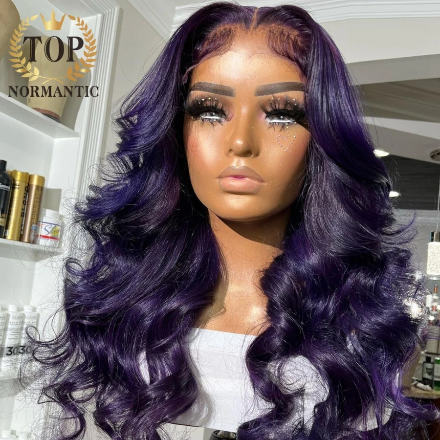 Topnormantic 13x 6 кружевные передние волнистые парики готовые бразильские человеческие волосы Remy фиолетовый цвет парик для женщин
