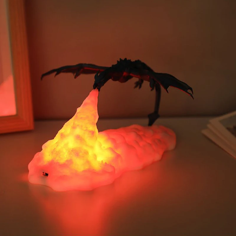 Лампа В Форме Дракона с 3D-принтом огня, ночсветильник для детской,...