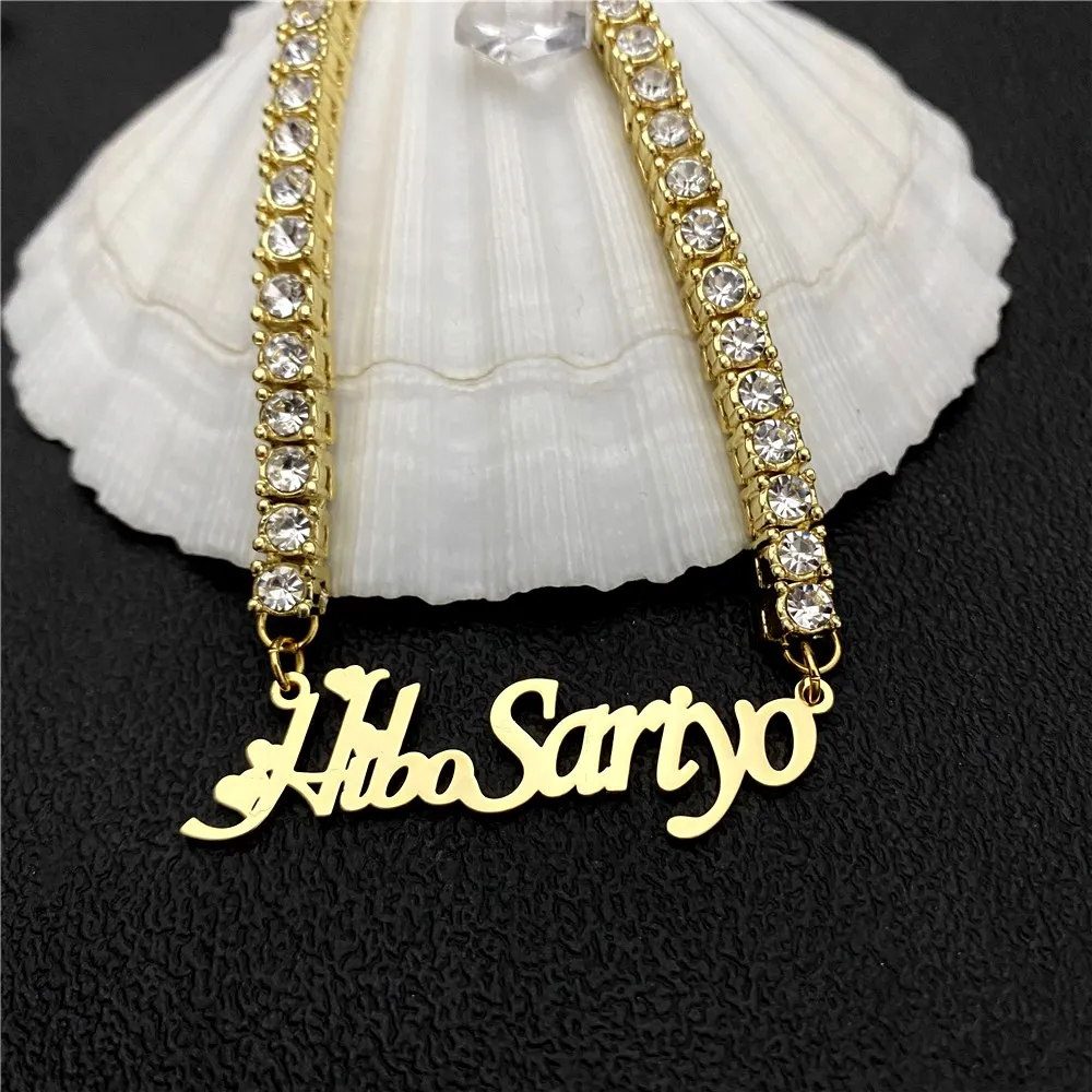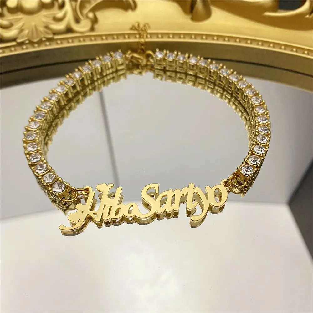 Название : Пользовательский именной браслет с алмазной персонализированной теннисной цепочкой, браслет из нержавеющей стали на заказ, золотой браслет для женщин, подарок