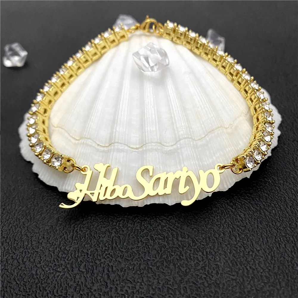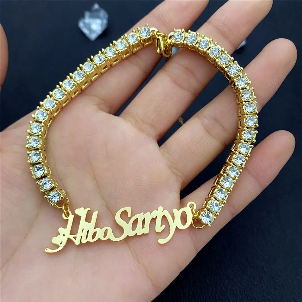 Именной браслет с бриллиантами на заказ, персонализированный браслет-цепочка для тенниса, золотой браслет из нержавеющей стали на заказ для женщин, подарок