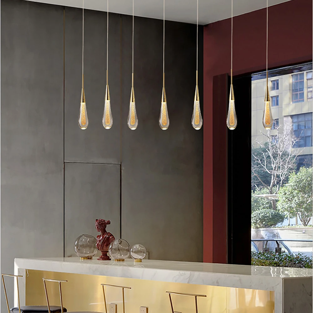 Современный светодиодный подвесной светильник в форме капли воды, золотистый кухонный светильник для холла, спальни, лофта, художественный потолочный светильник, осветительные приборы