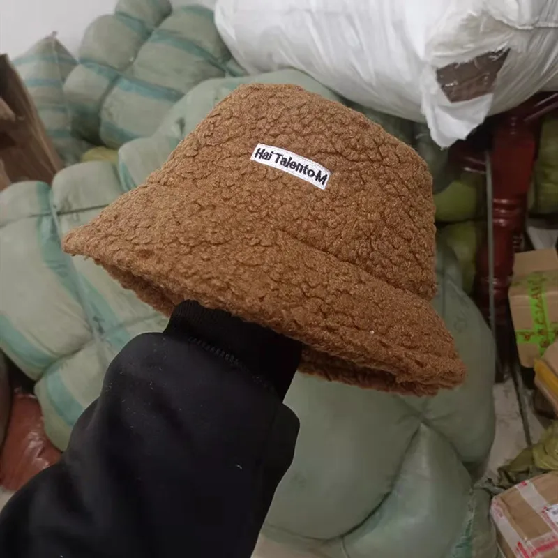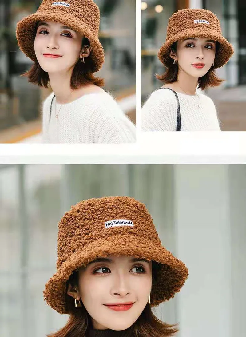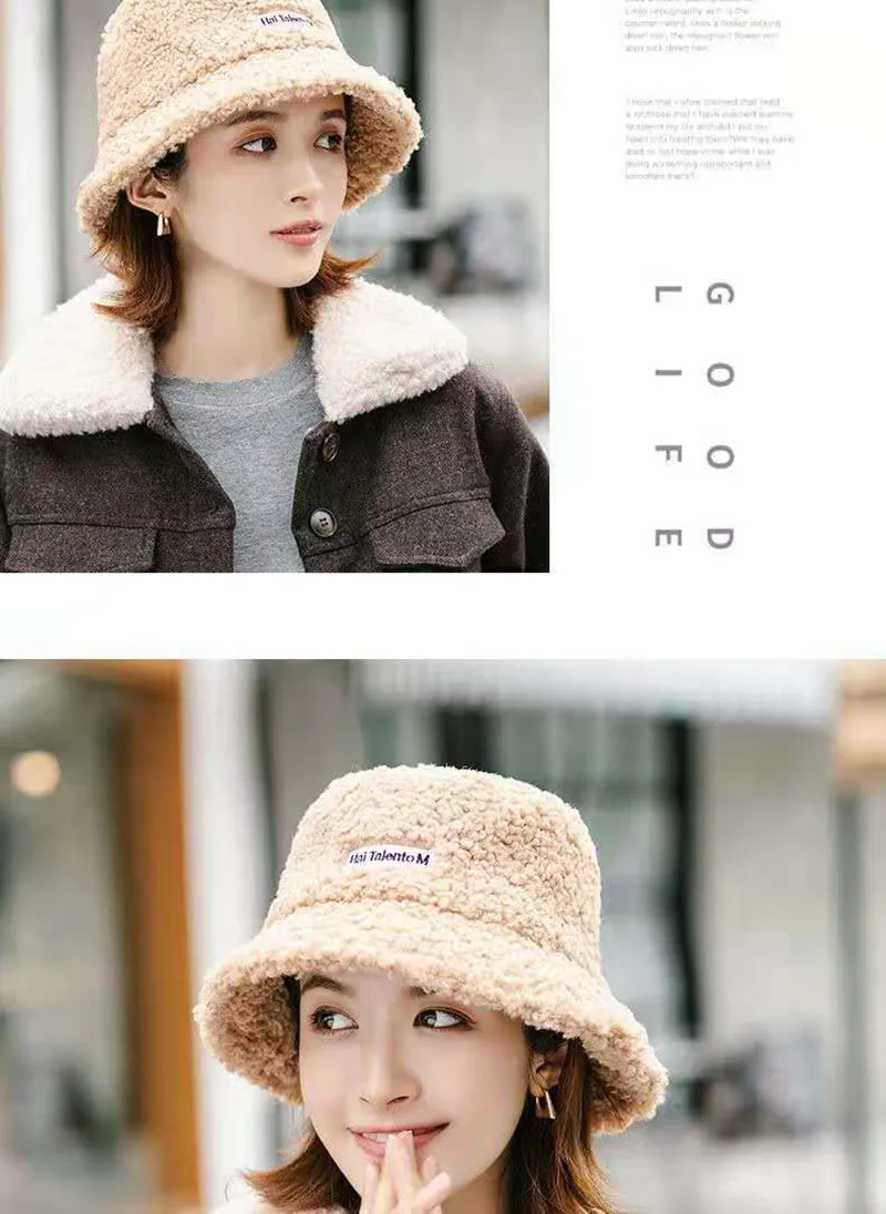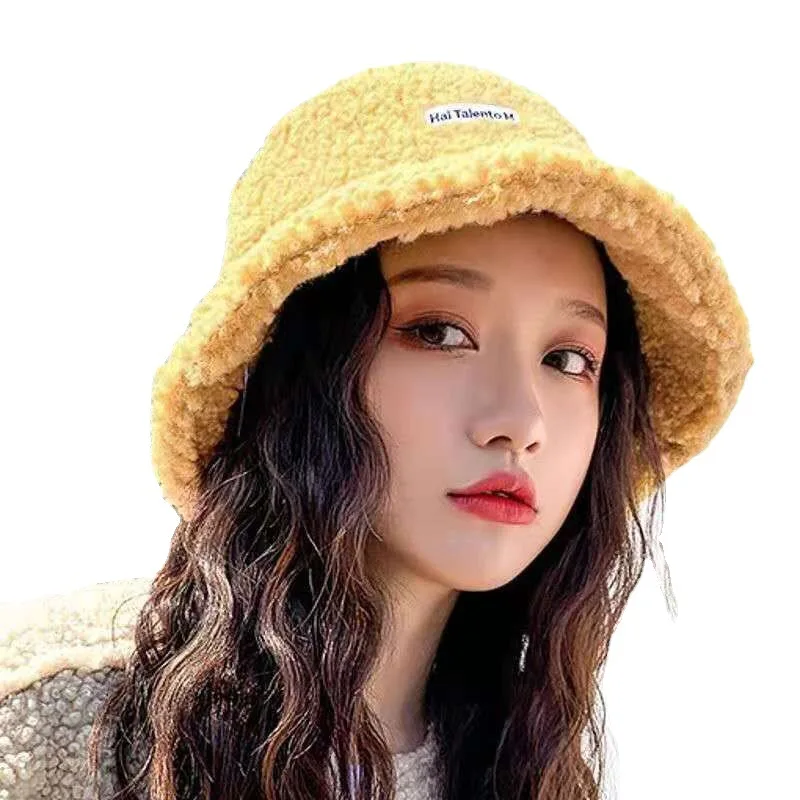 Панама в стиле Харадзюку для мужчин и женщин, однотонная шапка рыбалки, уличная теплая шапка из искусственной овечьей шерсти, Осень-зима 2021