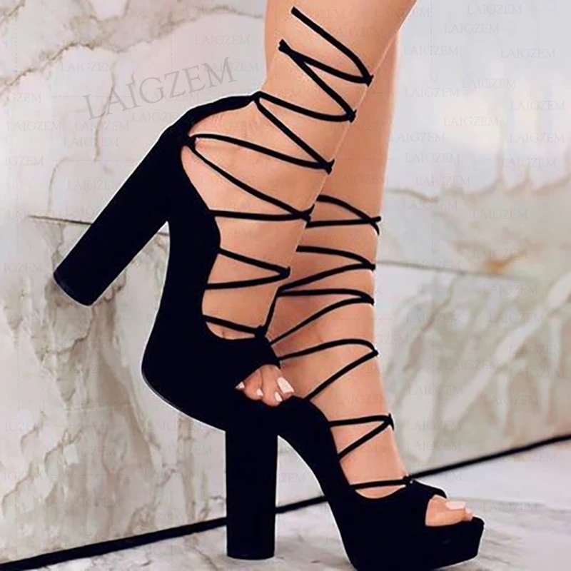 SEIIHEM женские сандалии с открытым носком из искусственной замши на высоком квадратном каблуке Туфли-лодочки на шнуровке Лето 2022 женская обувь большого размера 41 45 50 52