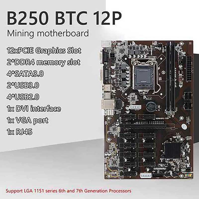 Материнская плата B250 BTC для майнинга 12 PCIE, слот для графическ...