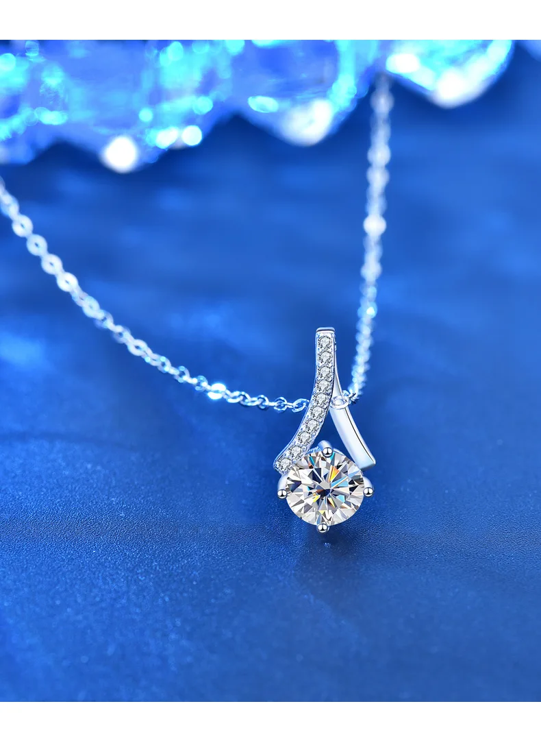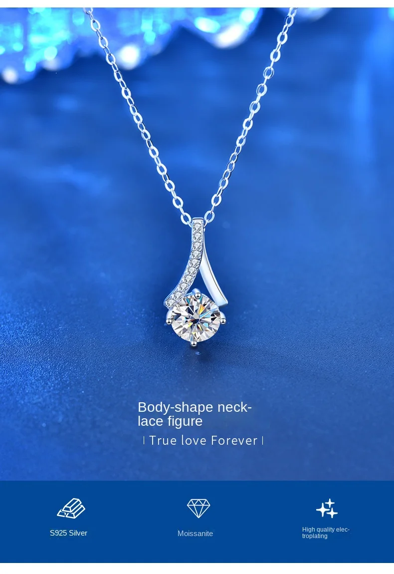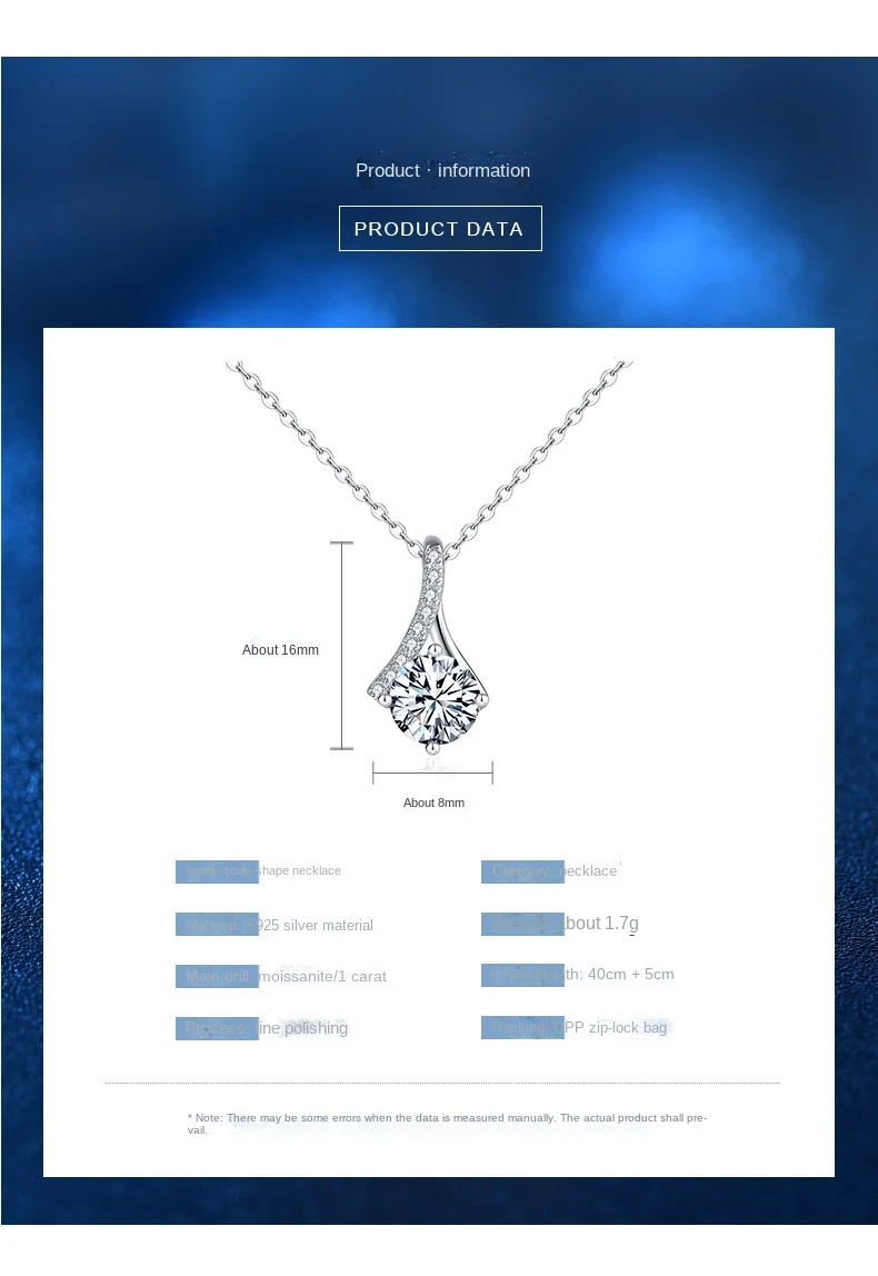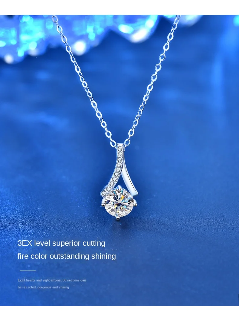 Ожерелье из серебра S925 пробы, Женская цепочка до ключицы, Четыре Зубца, 1 карат, мусанит, кулон, ювелирные изделия из чистого серебра