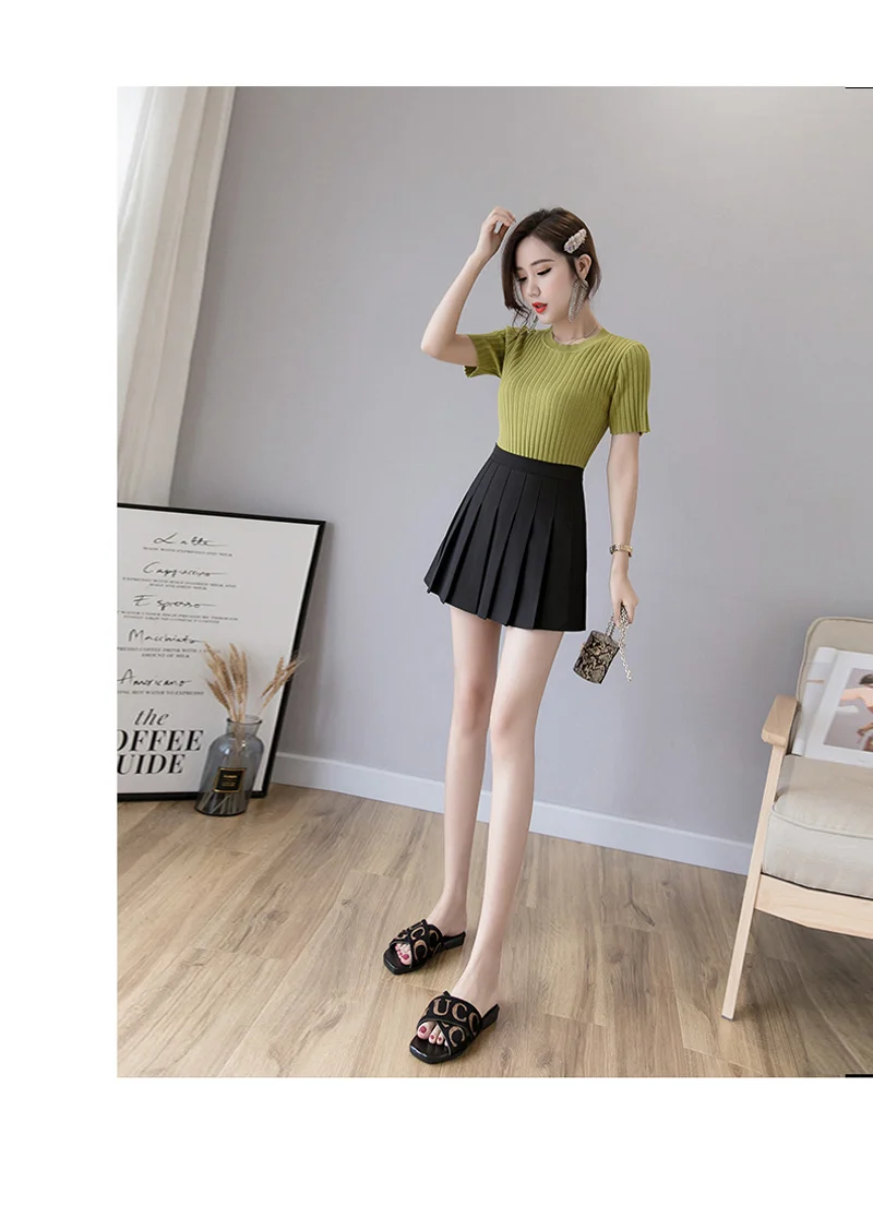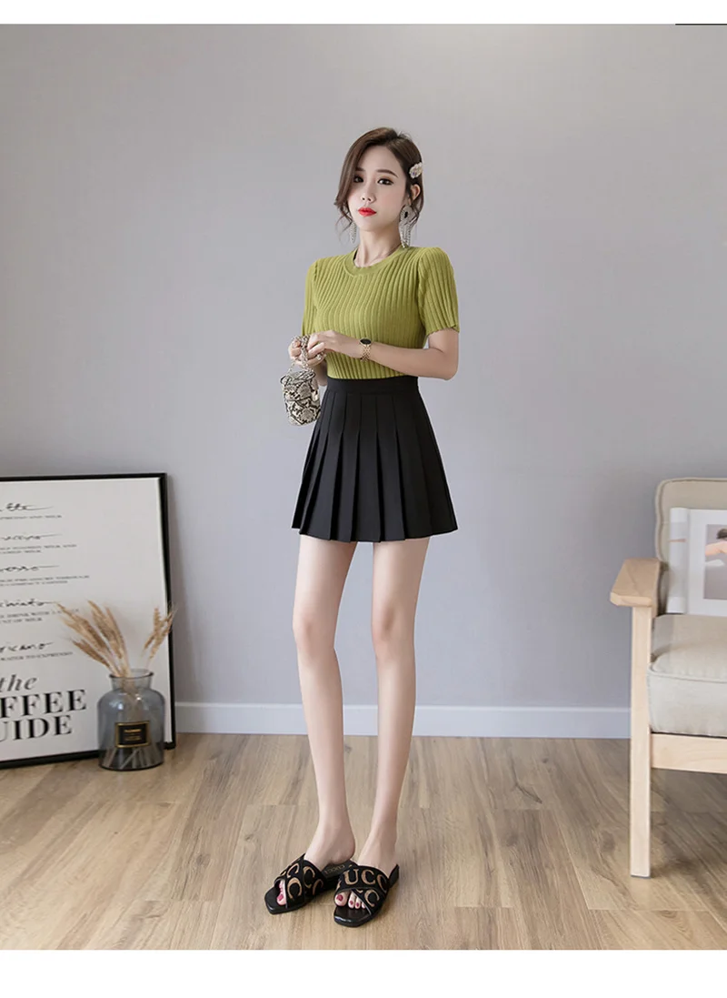 Плиссированная юбка с высокой талией, пикантные женские юбки, танцевальная юбка в стиле преппи на молнии для девушек, милая трапециевидная мини-юбка, повседневная Корейская юбка