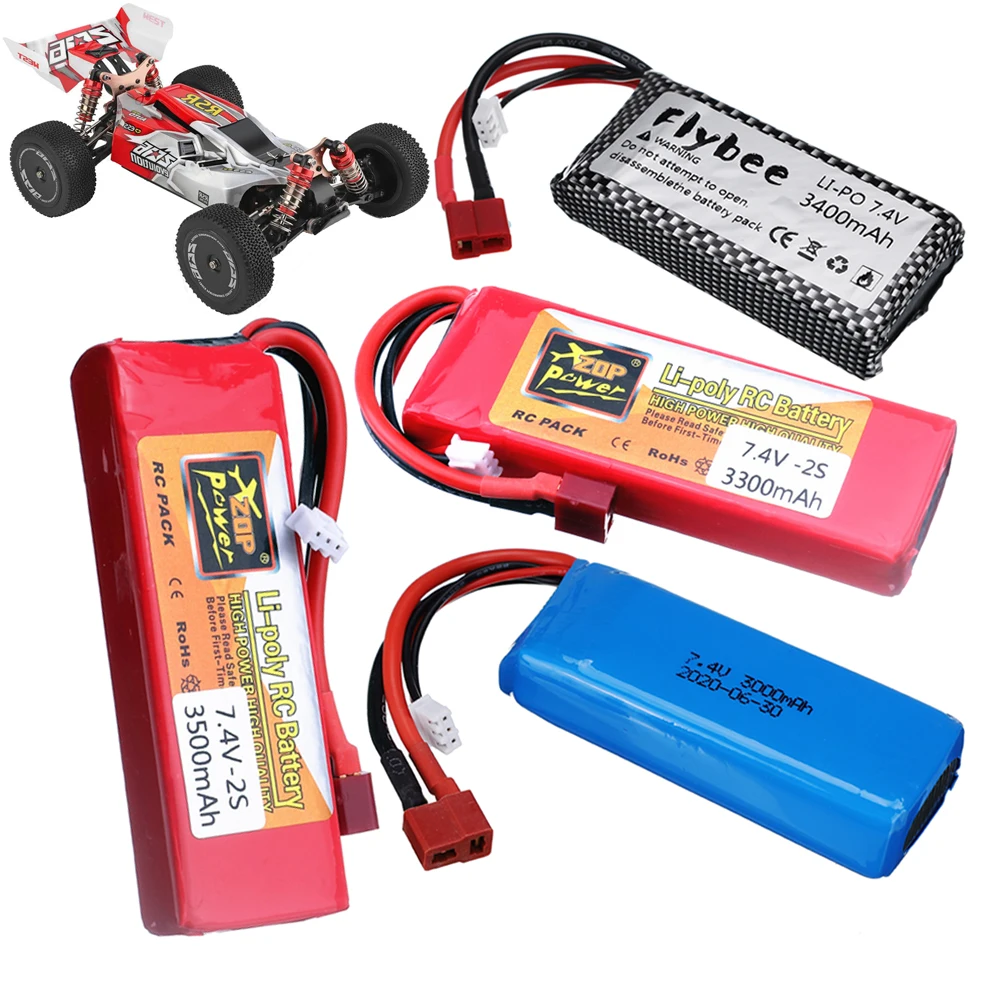 Обновленная литий-полимерная батарея 2500 мАч3400 мАч3500 мАч 2s 7,4 В для Wltoys 144001 124018 124019 12423 12428, аккумулятор для радиоуправляемого автомобиля с T-образной вилкой