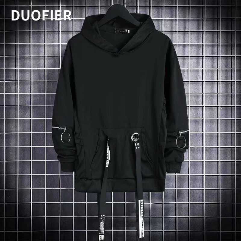 Мужская толстовка с капюшоном, черная, свободная, в стиле хип-хоп