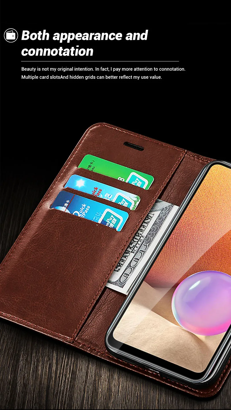 [Размер]: Идеально подходит для Samsung Galaxy A32 4G 5G 2021.[Материал]: Изготовлен из высококачественной искусственной кожи Crazy Horse. Кожа [Цвет]: черный/коричневый/розово-красный/синий, как на изображении.[Стиль]: 2021 Новая Винтажная модная, классная, роскошная, практичная Капа Funda Conque.[Особенность]: Ультратонкий чехол для мобильного телефона ручной работы в стиле ретро, разноцветный, ультратонкий.[Функция]: задняя защитная противоскользящая, Противоударная, грязеотталкивающая, анти-осенняя.