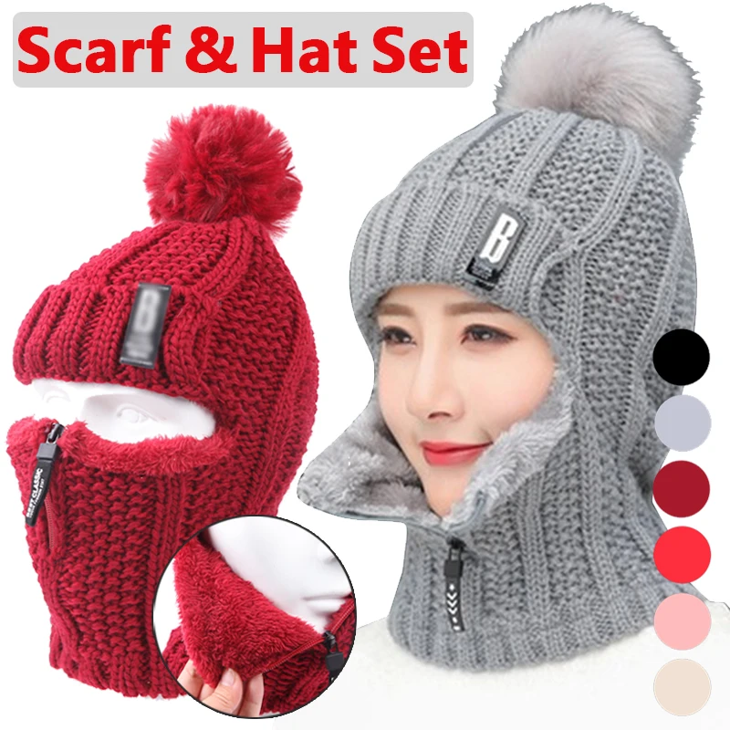 Зимняя вязаная Лыжная шапка из кораллового флиса маска на все лицо шарф женская уличная велосипедная теплая Толстая Балаклава Манишка теплые шапки с помпонами