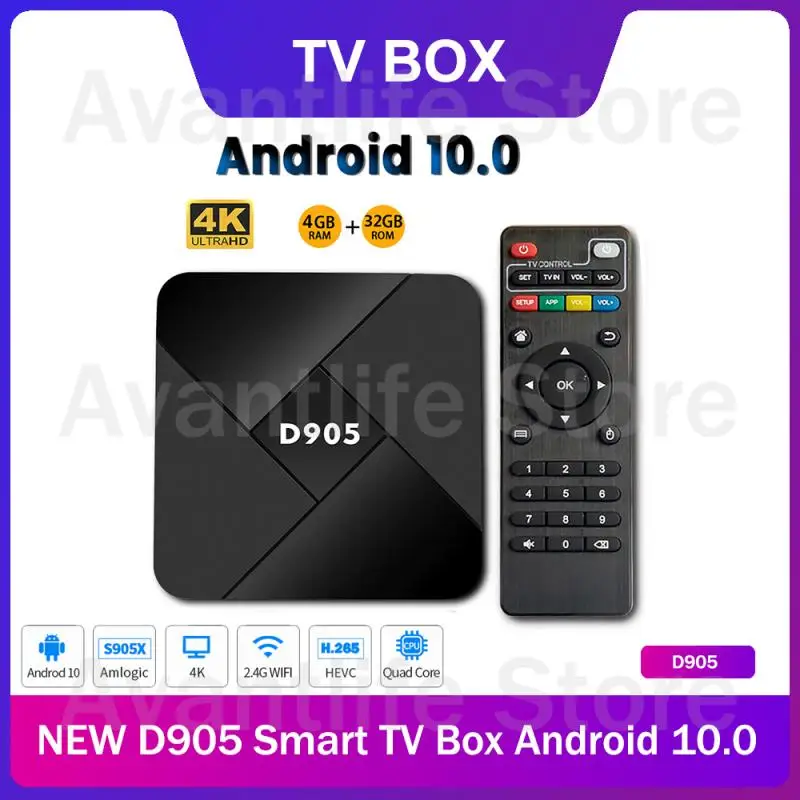 Приставка Смарт-ТВ D905, Android 10,0, 4 + 32 ГБ, Wi-Fi, 2,44K