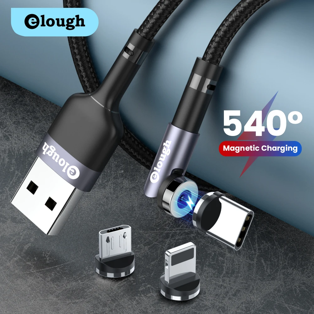 Магнитный кабель Elough с поворотом на 540 градусов, кабель Micro usb Type-c для iPhone, Samsung, Xiaomi, магнитное зарядное устройство, шнур для быстрой зарядки, USB-кабель, провод, кабель