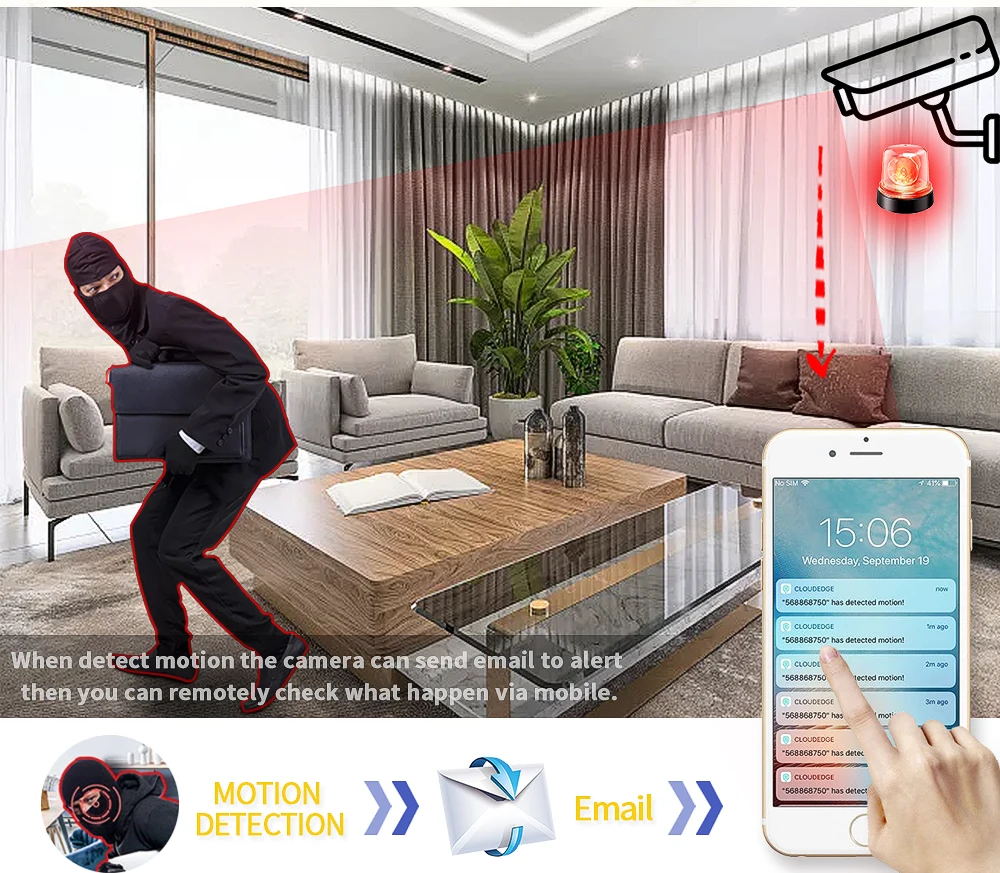 Можно настроить область, которую вы хотите контролировать, когда она срабатывает, она отправит сообщение на вашу электронную почту, вы можете получить информацию из первых рук, независимо от того, когда и где вы находитесь.
