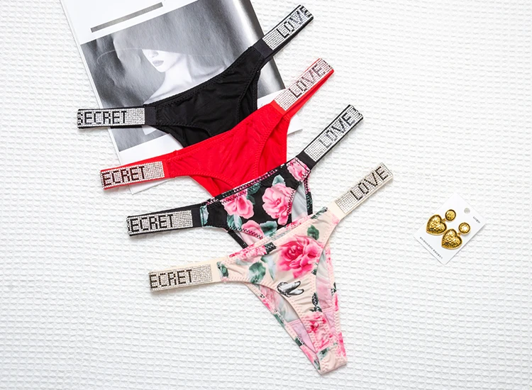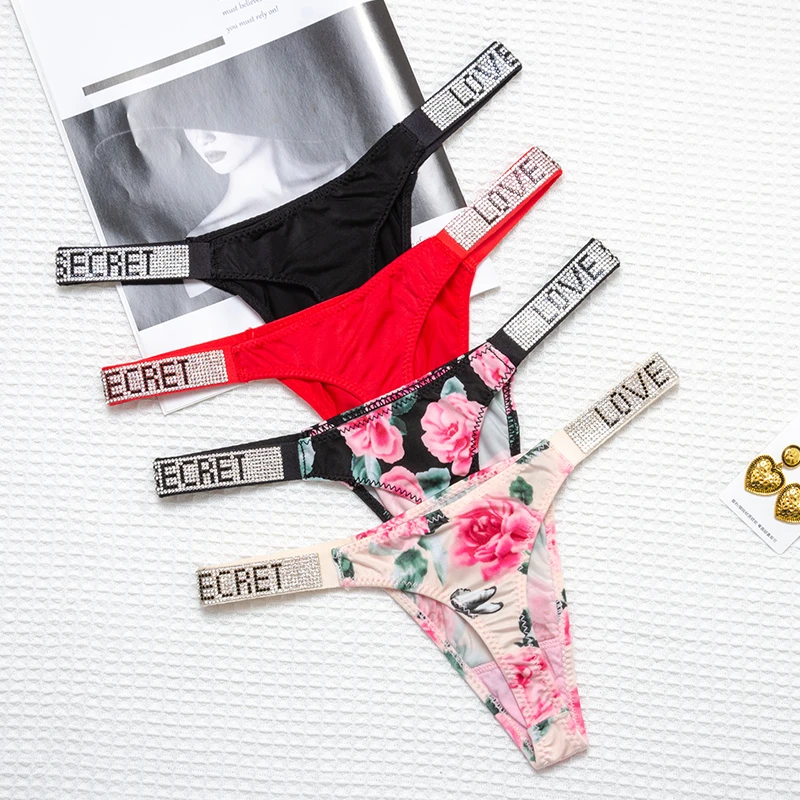 Сексуальные стринги стразы, женское нижнее белье, нейлоновые эластичные трусики, бесшовные трусики танга VS Panti с низкой посадкой, женские стринги