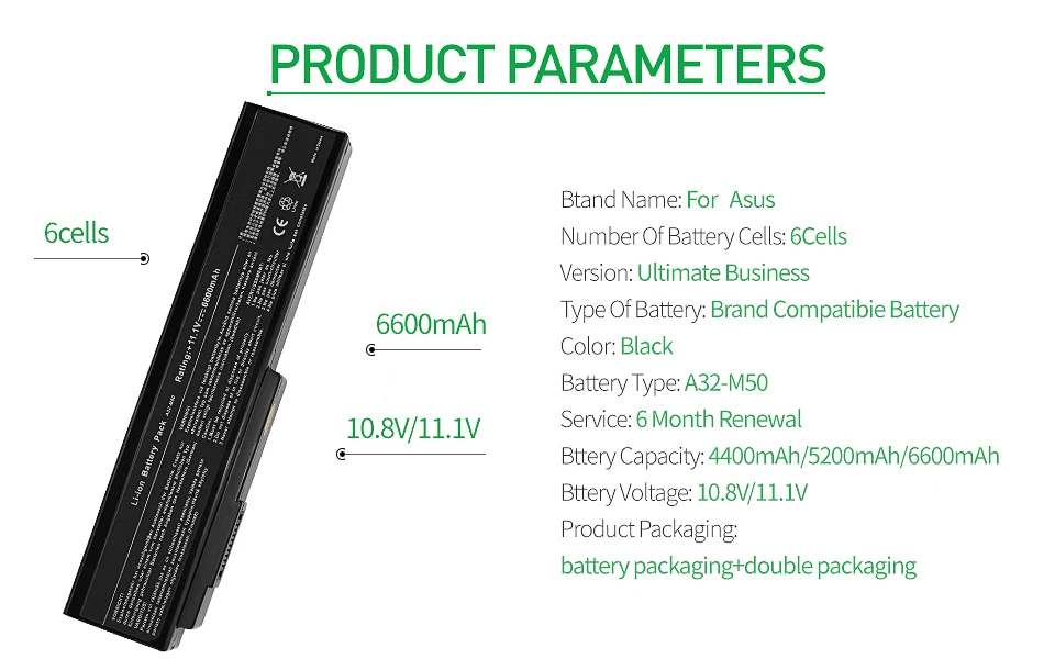 Замените номер детали:Для ASUSA32-M50 A33-M50 A32-N61Совместимость с:Для Asus